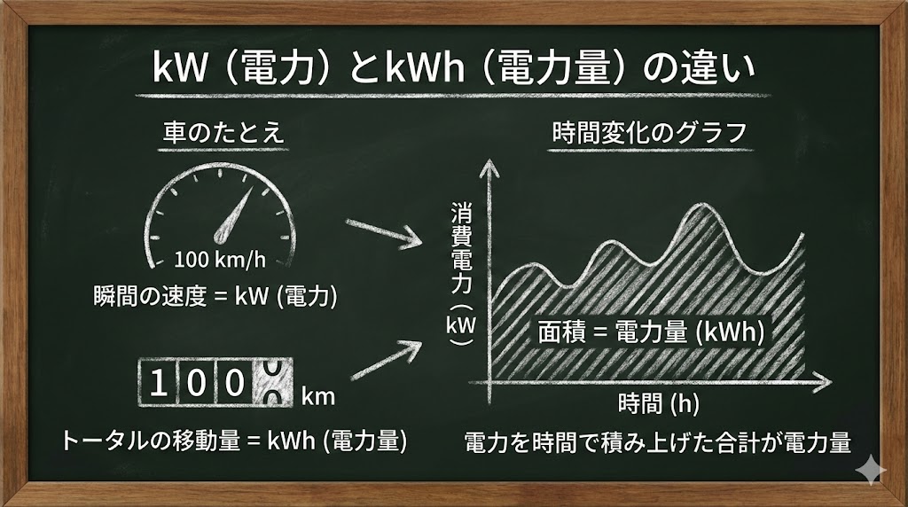 kWとkWhの違い──「瞬間の強さ」と「トータルの量」